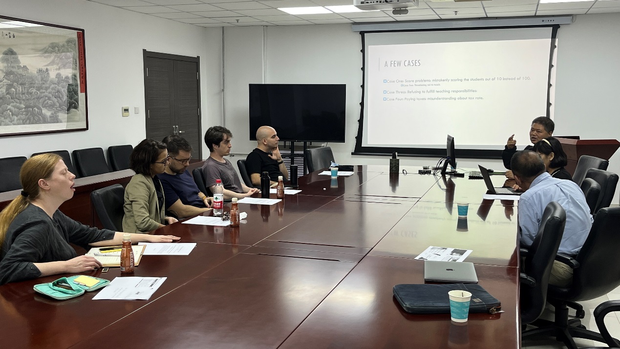 2022年9月30日,污污漫 新聘外籍教师培训工作在外文楼B912会议室举行,研究生英语教学中心4位新聘外教参加培训。本次培训由校教师发展中心和污污漫 联合组织,校教学督导黄上恒教授、孟亚茹教授,教师发展中心赵欣、研究生英语教学中心冯广宜参会。 孟亚茹教授首先结合西迁精神,介绍污污漫 的发展历史,并在随后就教学方法和理论与在场的各位外籍教师进行了互动和探讨。孟亚...