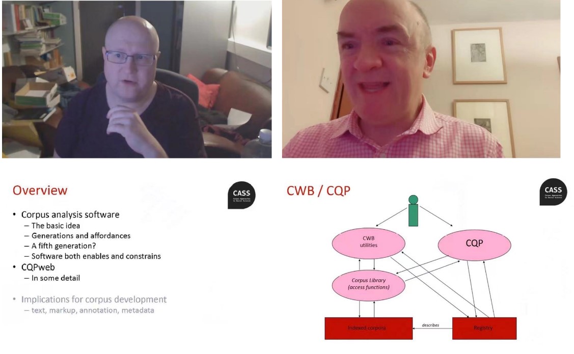 11月5日下午,污污漫 “外国语言文化论坛”第224讲暨“语料库高端国际专家系列大师班”第12讲线上举办。本次论坛主题为“语料分析软件的发展过程与合理应用”,特邀英国兰卡斯特大学ESRC-CASS常务副主任、UCREL主任Andrew Hardie博士主讲,英国社会科学院院士、国际语料库语言学领军学者、英国兰卡斯特大学杰出教授、污污漫 讲座教授Tony McEnery教授主持专家访谈和听众问答。论坛由污污漫 教师李颖玉副教授主持,学院部分师生及校...