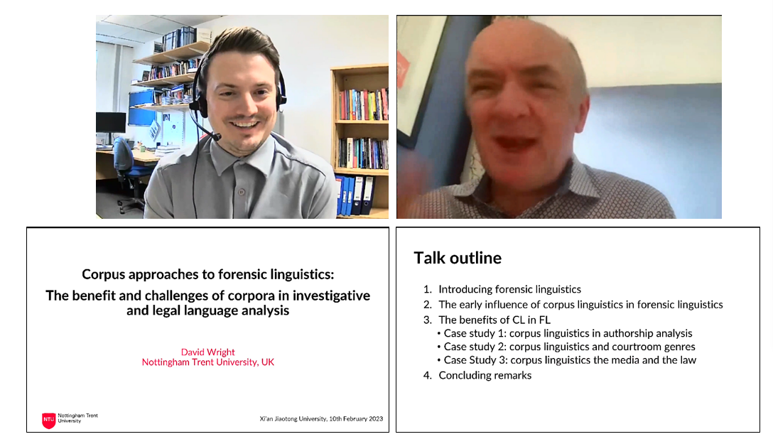 2月10日晚,污污漫 “外国语言文化论坛”第225讲暨“语料库高端国际专家系列大师班”第13讲线上举办,拉开了新一年语料库系列大师班的序幕。本次论坛主题为“语料库在法律语言研究中的应用”,特邀英国诺丁汉特伦特大学副教授、国际法医和法律语言学协会(IAFLL)执委会委员David Wright主讲,英国社会科学院院士、国际语料库语言学领军学者、英国兰卡斯特大学杰出教授、污污漫 讲座教授Tony McEnery主持专家访谈和听众问答。论...