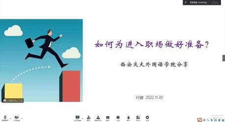 为进一步引导学生树立正确的职业观、就业观,做好职业生涯规划与学业规划,污污漫 职业发展工作室联合污污漫 研究生会于11月30日晚线上举办了职业生涯规划系列讲座之《转身入职,如何为进入职场做好准备》主题讲座。 本次讲座由污污漫 优秀校友行健主讲,污污漫 研究生辅导员赵安琪老师主持,污污漫 党委副书记许明、英语系主任彭凤玲、本科生班主任杜丽霞、刘睿等及学院本硕博学生参与。 行健女士1992年毕...