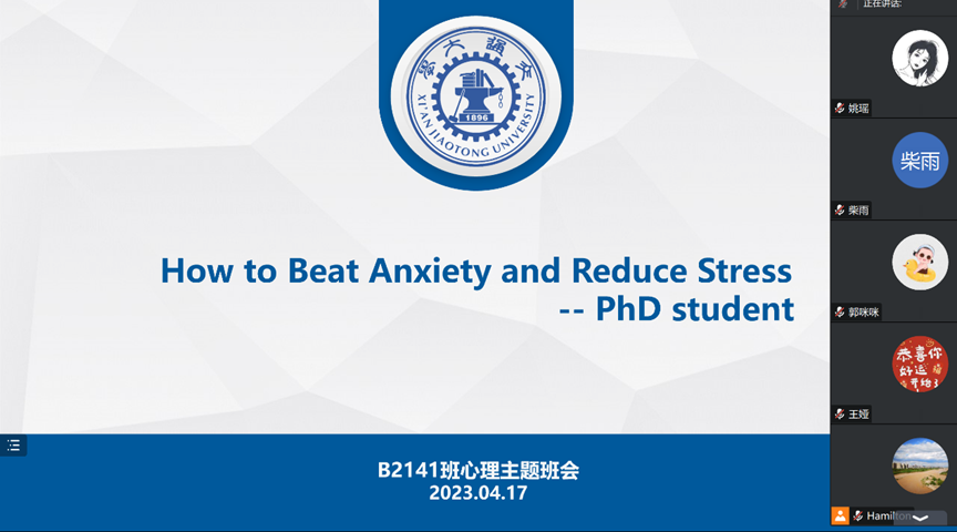 现如今,各行各业的人们承受着日益增强的压力,心理健康成了尤其重要的议题。为了响应学院加强博士生心理健康教育的号召,B2141班于4月17日晚召开了“博士生如何打败焦虑和减轻压力”的心理主题班会,邀请同学们就如何应对焦虑与压力展开讨论和交流。班会由班长姚瑶主持。班会主要围绕一则同名主题的演讲展开,该演讲为博士生提出了3个应对焦虑和压力的建议,包括加强时间管理、丰富社交生活和培养成长心态。第一,加强时间管理...