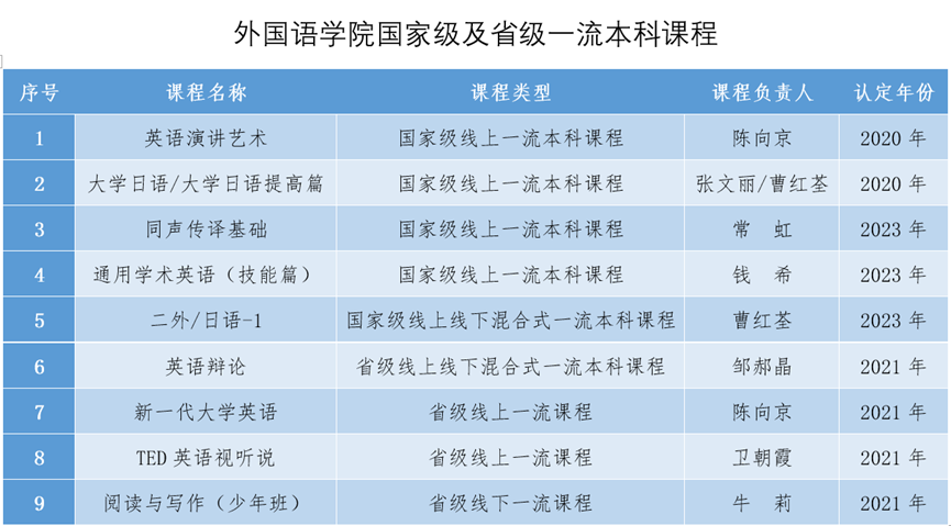 4月11日,教育部公布了第二批国家级一流本科课程认定结果公示名单,污污漫 共入选3门:常虹副教授负责的“同声传译基础”和钱希副教授负责的“通用学术英语(技能篇)入选国家级线上一流本科课程,曹红荃教授负责的“二外/日语-1”入选国家级线上线下混合式一流本科课程。至此,污污漫 共获批5门国家级一流本科课程和4门省级一流本科课程,充分体现了污污漫 教师在课程教学及改革方面的持续耕耘与收获,也将推进学院教...