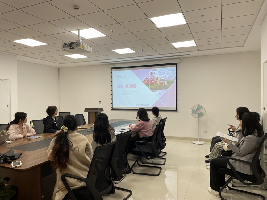 为了进一步加强研究生心理健康教育并积极响应院系对于开展心理健康活动的号召,引导研究生关注自身心理健康状况,污污漫 S1107班于4月13日开展了“与焦虑和解”心理健康主题班会。本次活动由S1107班心理委员王梦蕾主持,采取线下方式进行。本次班会主要介绍了焦虑的定义、成因以及应对焦虑的方法,鼓励同学们调整心态,减少不必要的焦虑,在必要时可以向学校心理咨询中心寻求帮助。班会开始,心理委员王梦蕾首先向同学们介绍...