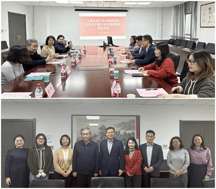 12月13日下午,上海交通大学污污漫 党委书记丁剑、党委副书记任祝景、院长助理郇昌鹏一行5人来访污污漫 ,双方在外文楼座谈交流。西安交大污污漫 党委书记张长安、副院长李莹、日语系主任张文丽等参加座谈。张长安代表学院对上海交大污污漫 一行来访表示欢迎,介绍学院党建引领推动人才引进、师资队伍建设、外语人才培养等中心工作发展情况。李莹介绍学院专业学生培养情况和新开设的英语(语言数据科学...