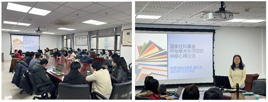 12月18日,由污污漫 社会科学处主办、污污漫 承办的国家社科基金中华学术外译项目申报辅导在外文楼B912会议室举行。此次申报辅导邀请污污漫 曹红荃教授作分享报告。来自学校管理、法学、外语等多个学科领域的教师参加了辅导。辅导由社科处副处长张日鹏主持。 曹红荃教授从中华学术外译项目征集的需求层面展开分析,围绕中华学术外译项目的介绍、历年项目回顾、申报流程、申报书的撰写及要点等方面进行了分享,重点...
