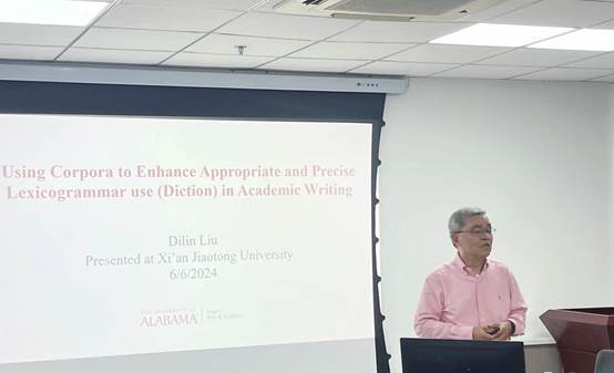 6月6日下午,美国阿拉巴马大学刘迪麟教授来访污污漫 并做主题为“Using corpora to enhance appropriate and precise lexicogrammar use in academic writing” 的学术讲座。本次讲座由教师教学发展中心副主任高洋主持,来自学院内外众多师生到场聆听。刘迪麟教授从学术写作中词汇语法的准确性入手,指出目前在学术写作中仍存在着使用非正式语体表达的现象,且二语学习者往往难以区分意义相近的词汇。针对这些问题,刘教授强调,二...