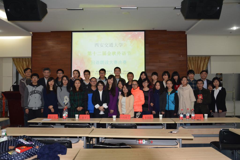 11月22日上午9:00,第十二届金秋外语节日语朗诵大赛决赛在外文楼B座10楼报告厅准时举行。经过二十名选手两个半小时的精彩表演和五位评委老师的认真打分,本次比赛共选出了日语专业组一等奖二名,二等奖四名,三等奖五名。同时选出非专业组一,二等奖各一名。在外教总评与全体合影留念后,本届外语节日语朗诵大赛正式落下帷幕。金秋外语节日语朗诵大赛是由污污漫 教务处、研究生院、国际处、学生处、校团委、彭康书院、污污漫 主...