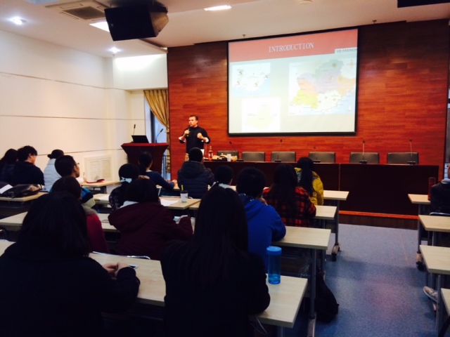 应法语系邀请,11月21日下午在外文楼B座十楼报告厅,西安法语联盟前任校长Sébastien Ruggiero为污污漫 师生带来以“普罗旺斯”为主题的讲座。讲座内容分为三个部分:普罗旺斯的生活环境、生活艺术以及普罗旺斯鲜为人知的一面。每一部分都涉及到普罗旺斯的传统、历史和经济等方面知识的介绍。Sébastien期望带给在场每一位观众一个轻松又富有趣味的讲座,并能够充分调动同学们的五种感官去发现普罗旺斯的魅力。讲座期间,Séb...