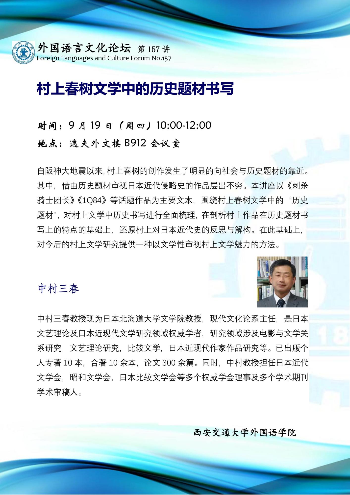 外国语言文化论坛(第157讲)—村上春树文学中的历史题材书写