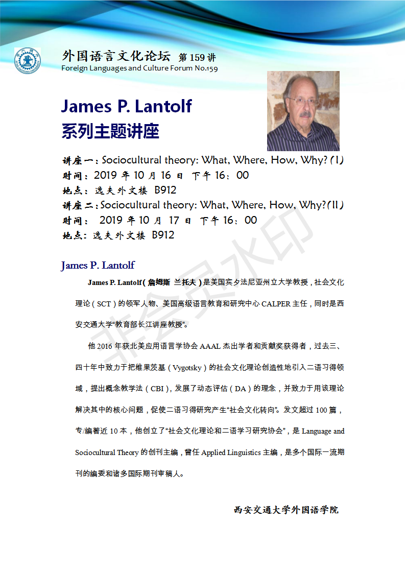 外国语言文化论坛(第159讲)—Sociocultural theory:What,Where,How,Why?