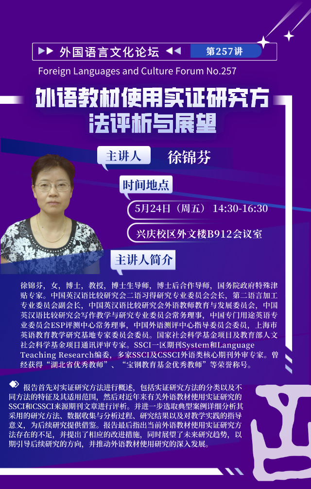 时间 5月24日(周五)14:30-16:30 地点 兴庆校区外文楼B912会议室