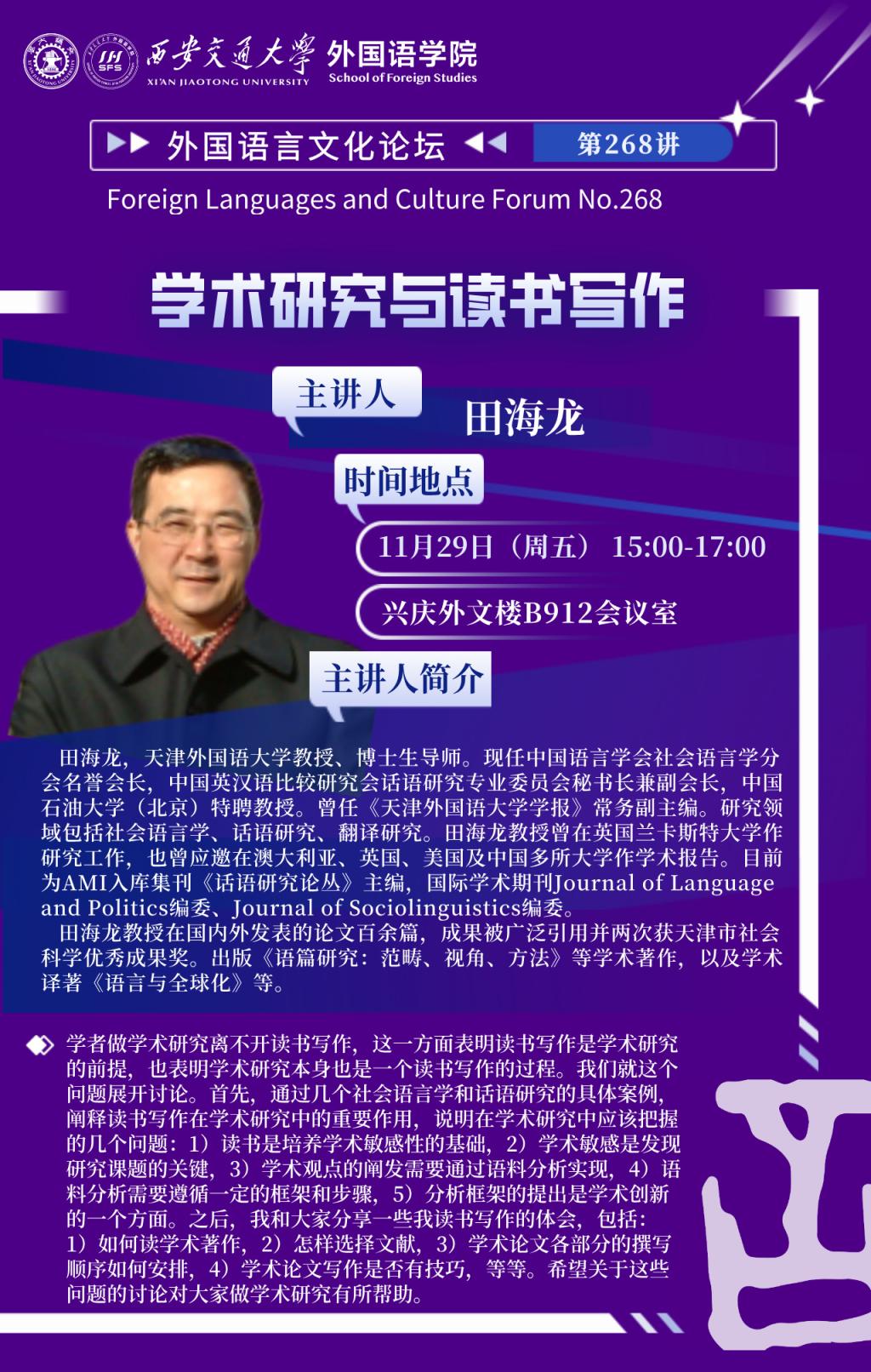 时间 11月29日(周五)15:00-17:00 地点 兴庆外文楼B912会议室