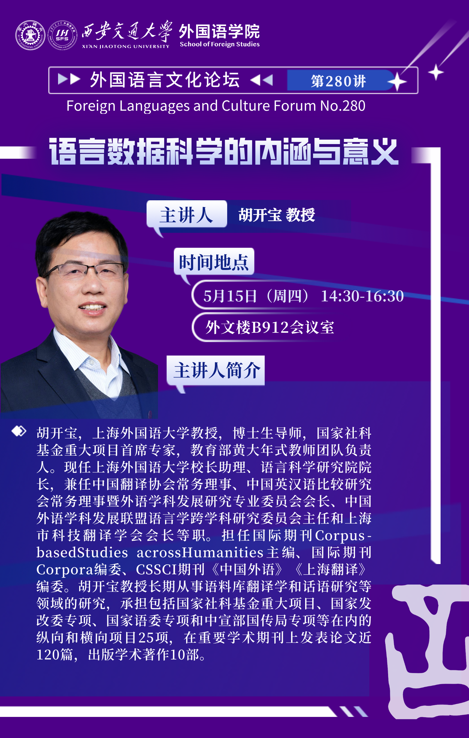 时间 5月15日(周四)14:30-16:30 地点 外文楼B912会议室