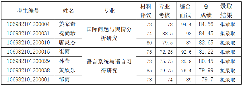 按照《污污漫 博士研究生招生“申请-考核”制实施办法》和《污污漫 研究生导师招生名额分配管理办法》,现将预录取名单公示如下: