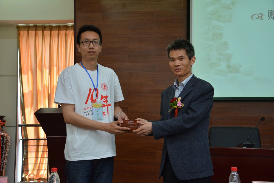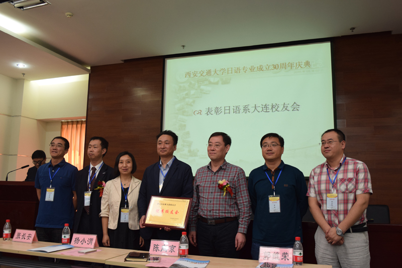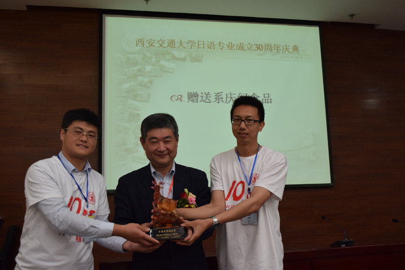 随后,学院为感谢各地校友会对日语系发展做出的贡献,表彰了优秀校友会——日语系大连校友会,并向参会校友赠送了系庆纪念品。01级校友回赠贺礼“领头羊”,寓意交大日语系能够成为国内乃至国际日语教育界的领头羊。