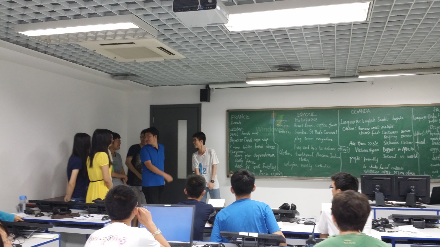 然而殊不知改革的馅饼已悄然落到了我们的脑袋上。我们不再循着小学期上选修的旧路,而是毅然踏上了更加具有实际意义的阶梯。就第一周而言,或年轻有富有经验的英语外籍嘉宾们成为了我们的老师,我们的朋友。每天6小时的全英立体环绕,整个得将我们抛到了英语的海洋中。一开始,英语水性不太好的同学会有些心悸。口语不好怕自己说不好英语,听力不好怕自己跟不上老师,诸如此类的问题在和外籍嘉宾相处几日之后便也烟消云散,只留下天空中明丽的彩虹,只留下课堂中爽朗的笑容。