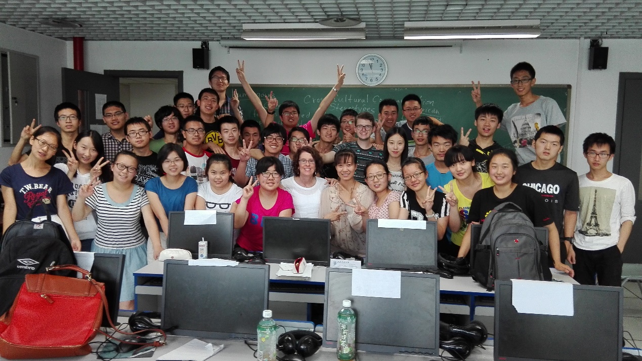 我们的外籍嘉宾Berkley和Karen两位女性,给我们带来了影响深刻的一周。Berkley年轻美丽,富有活力,这可是让工科班的男孩子们精神为之一振,学习英语的势头可足了!她的多才多艺也让我们赞叹,课堂上遇有我们不懂的词能够马上用形象的简笔画在黑板上绘出,同时对于书法也颇有研究,成为女孩子们学习的榜样。Karen是一位富有教学经验的老师,她的课堂生动活泼,她用幽默的言语,丰富的肢体语言让同学们沉浸于其中,收获了知识,亦收获了快乐。让我印象极深的是她对于我们读音的纠正。她让我们仔细观察当她发某个音时她的嘴型,细节至嘴唇的形状,牙齿与舌头的具体位置,并且不厌其烦地一遍遍重复,一个个同学验视,确保每个同学都掌握。对于读音,我们往往自以为做的不错,然而距离正确实则还是有一定距离的。Karen让我们记住了“it”要嘴唇基本不动,而“heat”要咧开嘴笑。我相信这种记忆将会成为身体的一部分,当我们开口说之时,嘴巴已经那么做了。而这也正是外籍嘉宾的魅力。