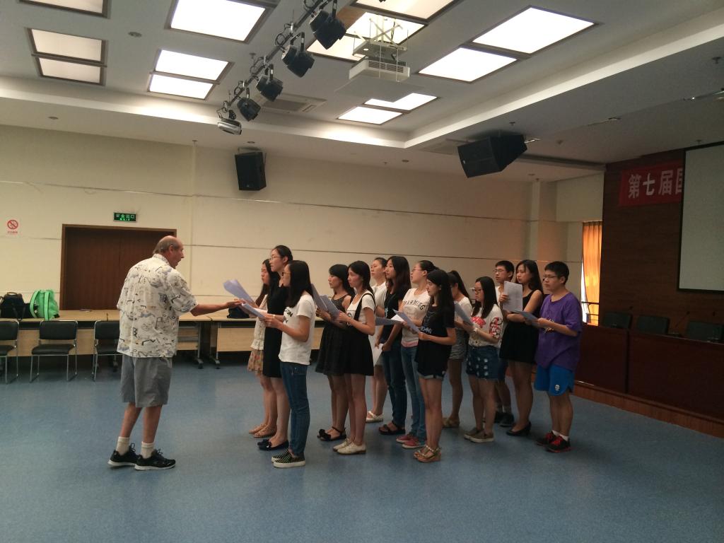 上午8点半,学生们已经早早到达会议厅内,在Philippe老师的指挥下,学生们将桌椅集中起来,留出中间一大块空地,别样的布局开始引起学生们的好奇心。大家四散坐开,根据每个人的声音特色,Philippe将所有人平均分成两组,以跑步的方式帮大家找到了彼此的搭档。这就表明,这四天不仅有团体作战,还有两人之间的互相配合,这样有趣的开始注定会有一个前无古人的完美结局。