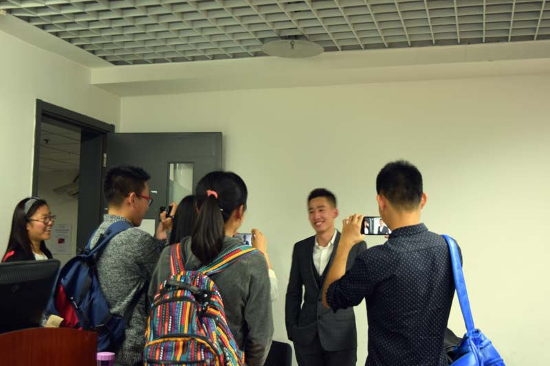 讲座结束后,同学们一拥而上围住学长,咨询关于职业规划的各种问题不愿离开。面对热情的学弟学妹提问,学长一一耐心地给予解答,更是在最后接受了来自大一学生的采访。趁着即将到来的120周年校庆,他也借此机会表达了自己对母校以及同学们的衷心祝福。