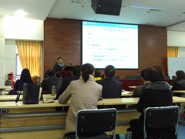 在外文楼B-1001报告厅召开2015年度研究生与导师大会。全院研究生导师、在籍研究生参加会议。MTI教育中心兼外国语言研究中心主任聂文信副教授主持大会。