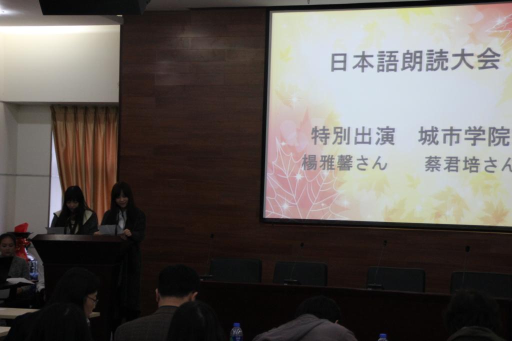 两位交大城市学院日语系的同学杨雅馨和蔡君培也友情参演,朗读了一篇文字优美的文章。