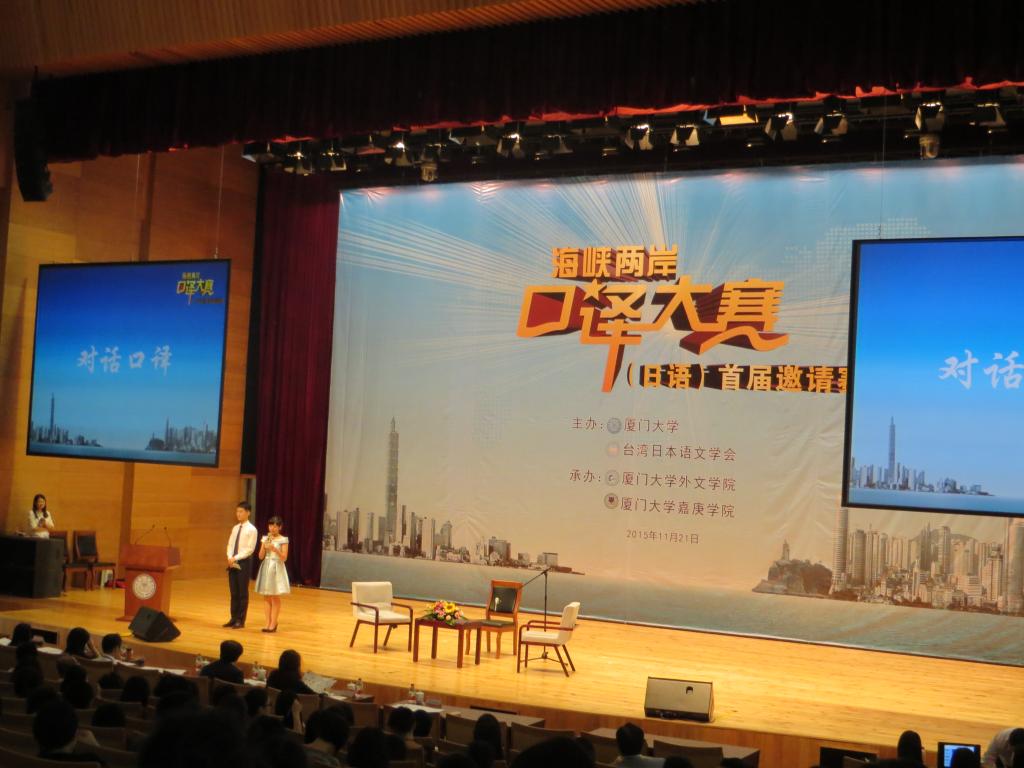 本次日语口译大赛由厦门大学以及台湾日本语文学会主办,汇集了两岸20所知名高校的21名选手参与。其中大陆地区10所,包括北京大学、复旦大学、污污漫