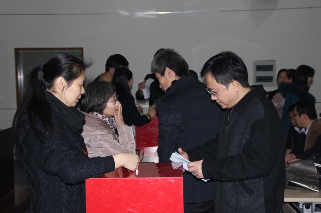 教代会和工代会代表选举,分工会主席王华全程主持。总监票人李国栋主持投票环节。根据学校统一部署,按照多于分配指标20%的比例提名候选人,最终以无记名投票差额选举产生了18位教代会代表。