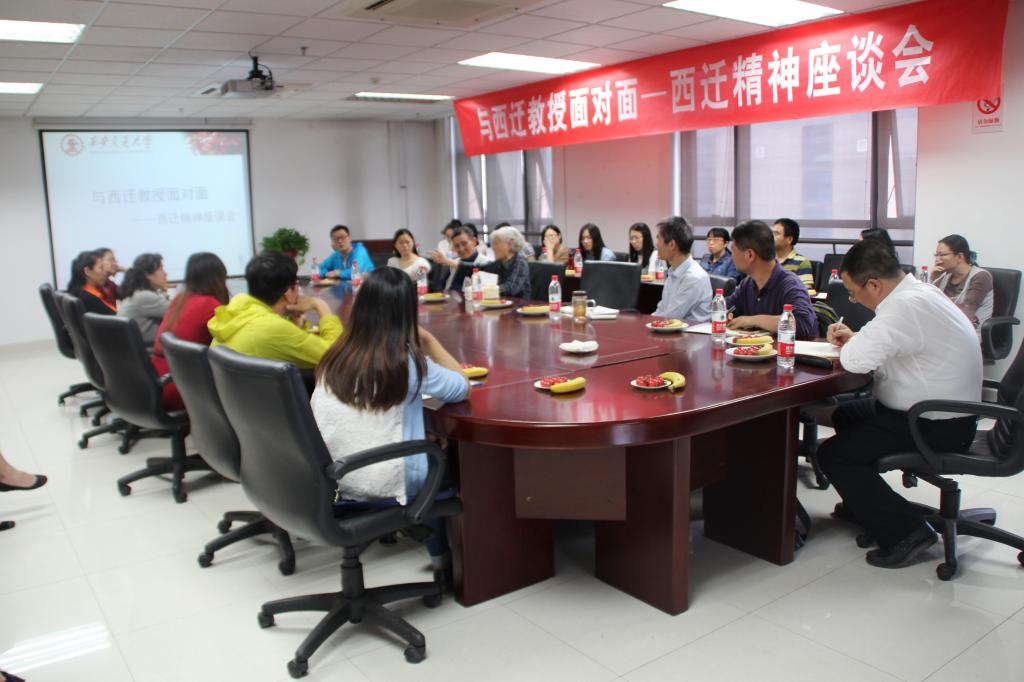 党委于外文楼B912会议室举行“与西迁教授面对面——西迁精神座谈会”。学院分党委书记杨小渭,教工党支部书记、委员及学生党支部共计30余人到会聆听学习。座谈会由学院教工机关党支部和研究生硕2015级党支部承办。