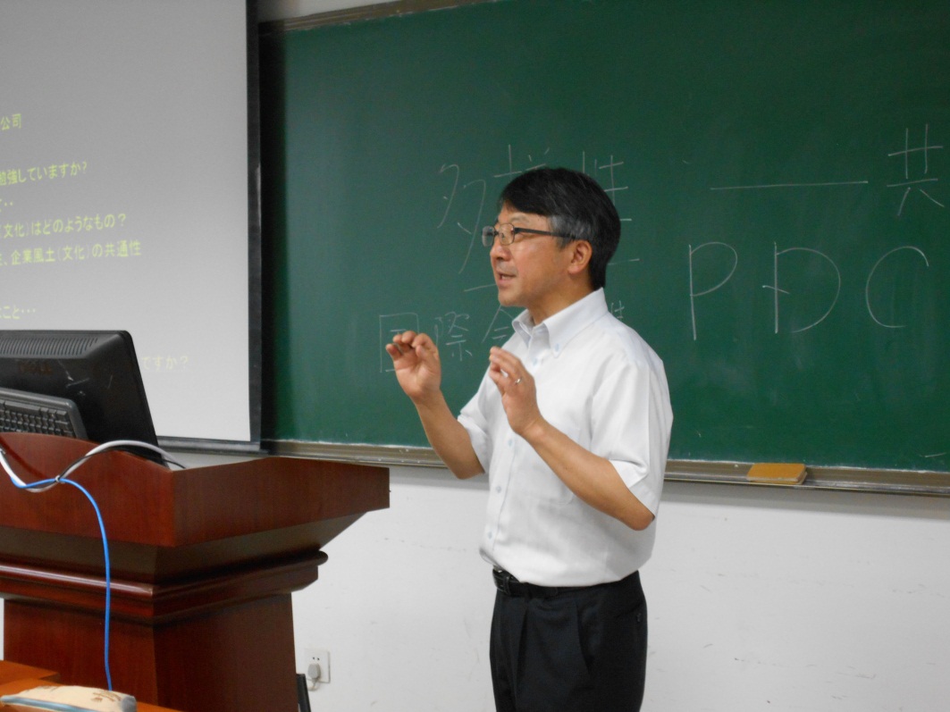 7月8日星期五上午9点半,由日语系外教竹下老师引领着,这位穿着笔挺西装的日企高管带着和善的微笑准时敲响了教室的门,眼镜下闪烁的笑眼和日本人典型的彬彬有礼,让本来有些拘谨的日语系学生们一瞬间倍感亲切自然。