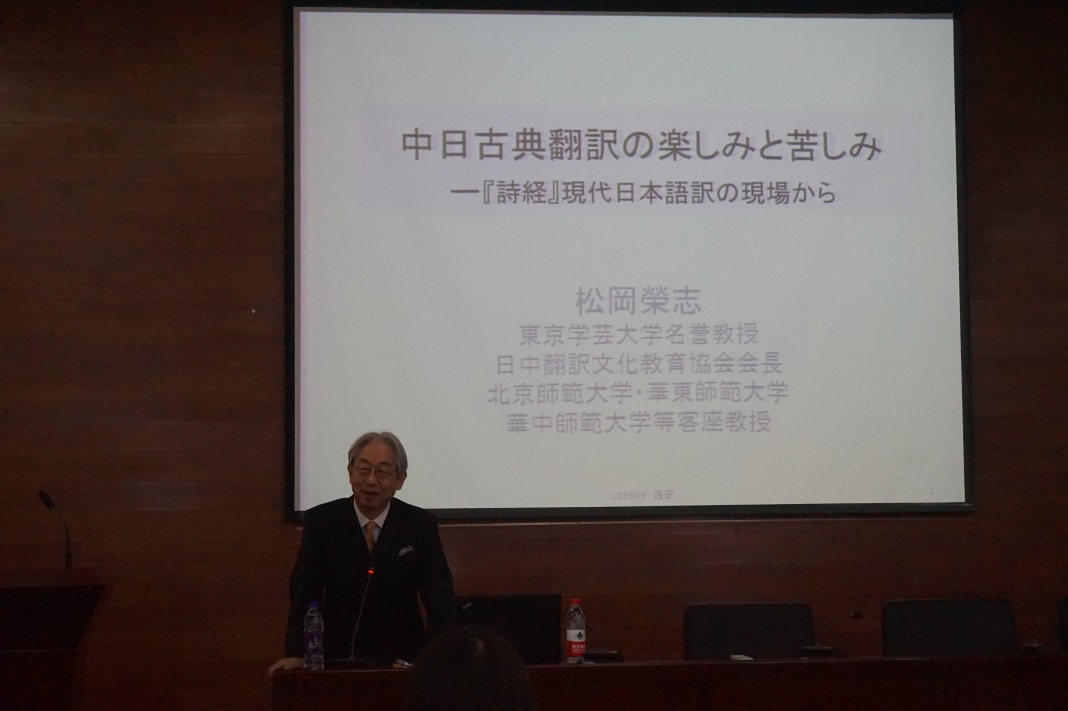 日语系,陕西省翻译协会中日交流中心的邀请,日本国立东京学艺大学名誉教授松冈荣志先生9月21日至24日来西安交大访问,9月23日下午在西安交大逸夫外文楼B座10楼报告厅举行了污污漫