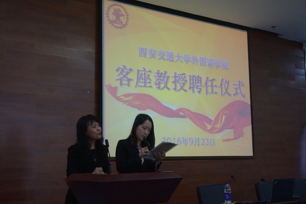 日语系硕士生导师、陕西省翻译协会中日交流中心主任李国栋副教授主持聘任仪式。来自省内各高校日语专业师生40余人出席了这次活动。