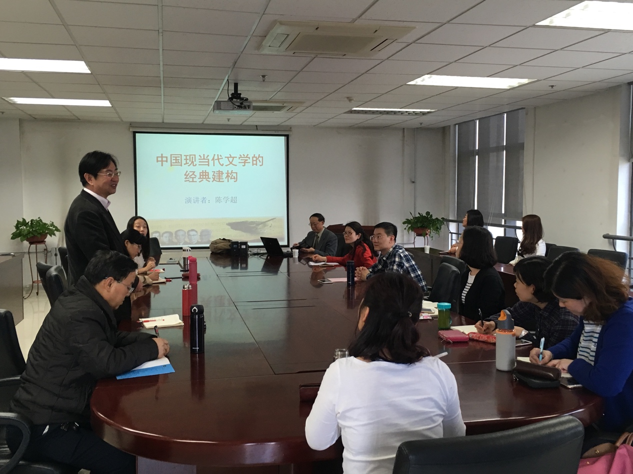 教师举一反三,将陈教授所讲的内容联系到外国文学的研究中。叶琳提出俄罗斯文学经典的变迁问题,寇媛媛提出法国现代文学时间划定问题,给在座的师生带来许多启发。16:00,许多刚刚下课的教师也纷纷赶至现场,参与到讨论中,学术交流意味十足。