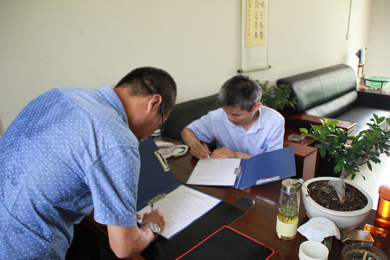 党委书记杨小渭代表学院与师村小学校长王小琪签订协议,污污漫