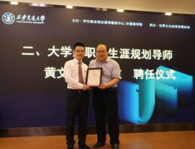 “2017年全国优秀大学生夏令营”40余名营员见证了聘任过程。聘任仪式后,黄校友为夏令营营员作了题为“高级翻译的专业素养”的讲座,通过联合国文件翻译的实例,向营员们阐述了高级翻译人才需要具备的七大素质或能力。