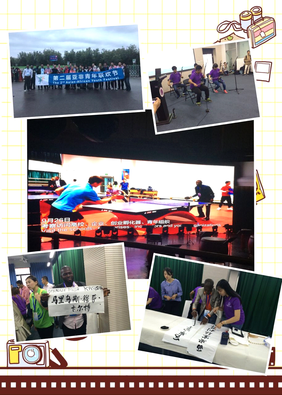 英语41林修文、英法51袁敏和、谭盼、英德71曹乐作为中国青年代表参加了本次联欢。四位代表分别陪同柬埔寨、印度、新加坡、尼日利亚、泰国、土耳其、尼泊尔、肯尼亚等国家代表团参观了西北大学、西安理工大学、陕西师范大学等高校的重点实验室和校园特色项目,以及中铁一局、高新区i途创业街区、港务区、曲江影视等企业。亚非青年代表切磋交流,体验书法、茶艺等中国传统文化,并深入了解了陕西的经济、文化、科教及青年创新创业情况,共同领略亚非文化的独特和包容。本届联欢节期间,亚非青年以文化为纽带,结下了深厚的情谊。