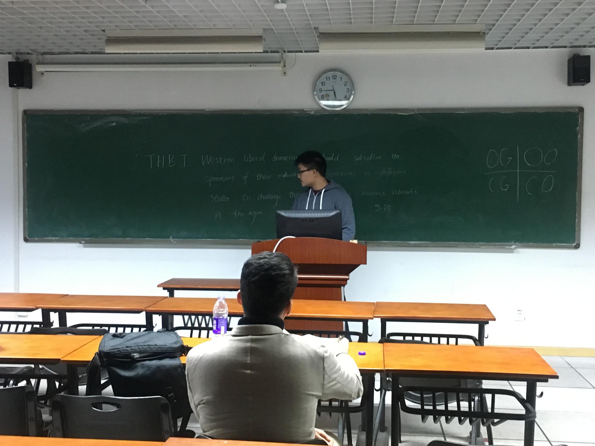 王鸿儒、张乐、陈雅莉、张煜成等辩手组成裁判队伍。每一位裁判都尽职尽责,不仅以认真负责的态度保证了比赛质量,还在赛后点评中综合辩题与辩手表现,详细点评并解答了辩手的问题,提高了参赛同学的辩论水平。