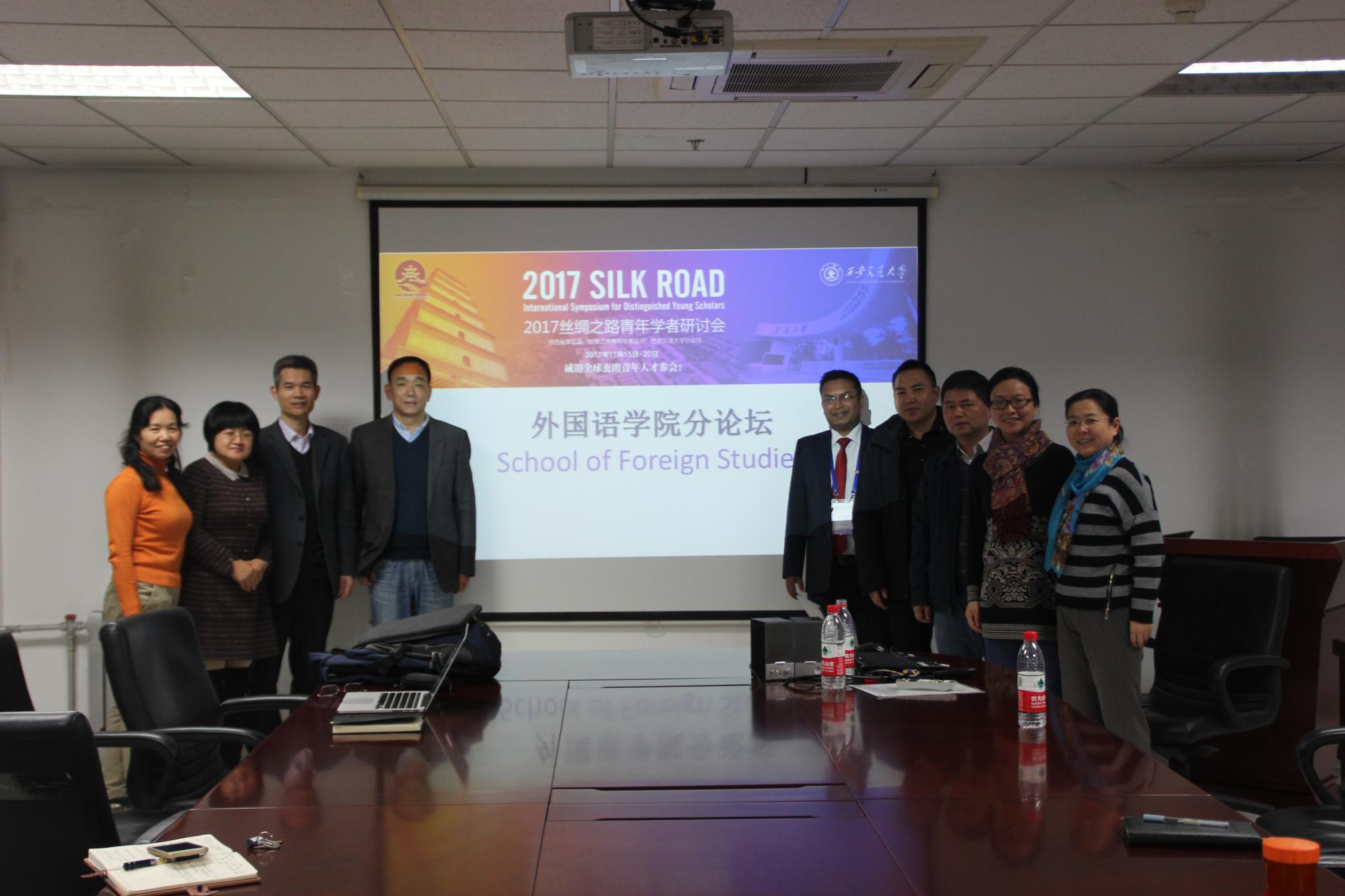 党委副书记许明主持,两位丝路青年学者桑仲刚和Pramod Jaiswal,污污漫