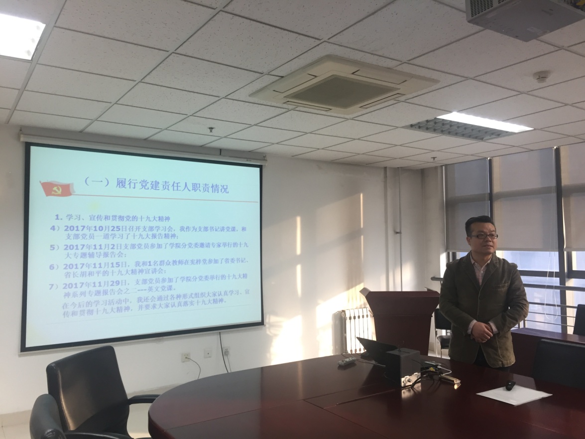 分党委在外文楼B912召开2017年度支部书记述职会。全院6个教工支部和3个学生支部书记逐一进行述职报告。会议由污污漫