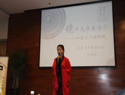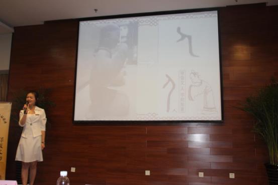 随后,由西安博物院的蹇茹讲解员带来“彬彬有礼的汉代跽坐女俑”的演讲。她讲到这种跽坐与汉字“人”的来源有关,体现了古代的“人为贵”的思想。她同时也提到这种坐姿可以显示古代人对他人的尊重。