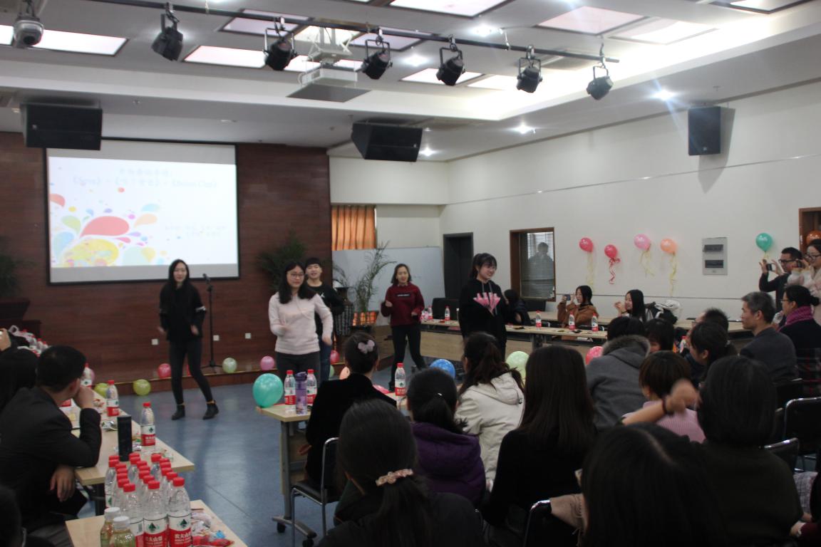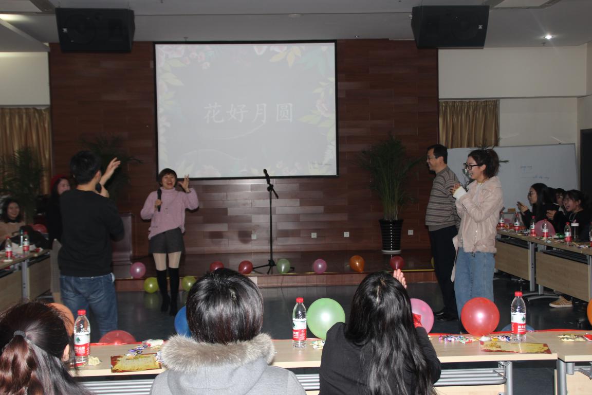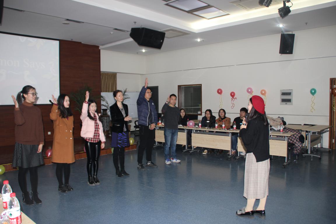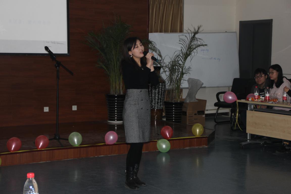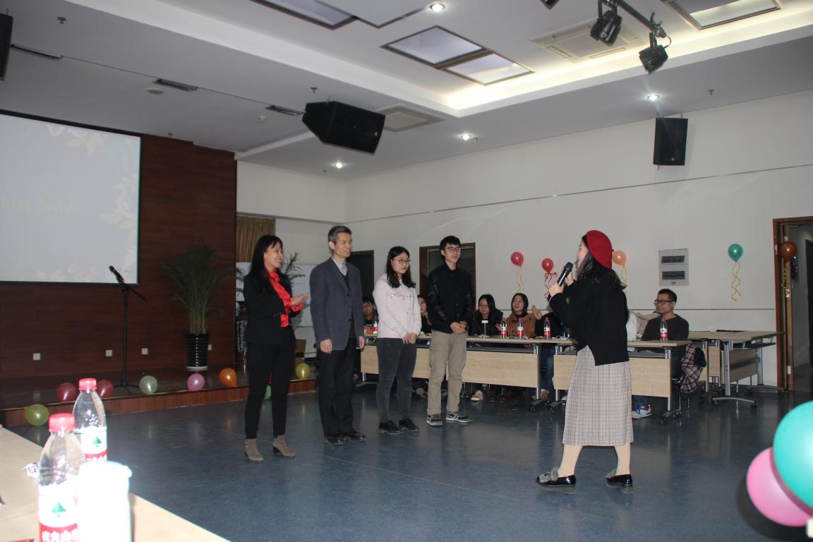 本次联欢会节目形式多彩多样,从舞蹈串烧,到吉他弹唱,从诗朗诵,到现代舞蹈,从集体表演,到个人演唱,不仅为表演者提供了一个展示的舞台,同时也为现场观众打造了一场视听盛宴。2017级MTI的同学表演的舞蹈串烧,刘欣佳的吉他弹唱《斑马斑马》,李佳洋的《Secret Base》,李婧雯演唱的《旅行的意义》,冯星宇带来的舞蹈,徐琦、刘雅恬的《胆小鬼》,学硕2017级同学带来的歌曲串烧,朱海博演奏的《梦中的婚礼》都给大家留下了深刻的印象。平日里看似严肃的老师们也参与到表演中来,金中老师为大家带来《我希望这世界不再有硝烟》的诗朗诵并示范大家歌曲配译演唱,李国栋老师演绎了经典的日语歌曲《北国之春》,靳蓉老师用葫芦丝给大家演绎了印度民歌《船歌》,樊雨琦老师带来欢快的法语歌曲。整个联欢会现场洋溢着轻松和欢快的气氛。游戏环节更是燃起全场的气氛,“英说中词”考验了大家的反应能力和对流行词的把握,同时也是游戏参与者之间默契度的挑战。“Simon says”考验大家听力的同时,调动起全身的感官,着实刺激。“答非所问”颠覆以往的逻辑,不走寻常路,让现场充满欢声笑语。