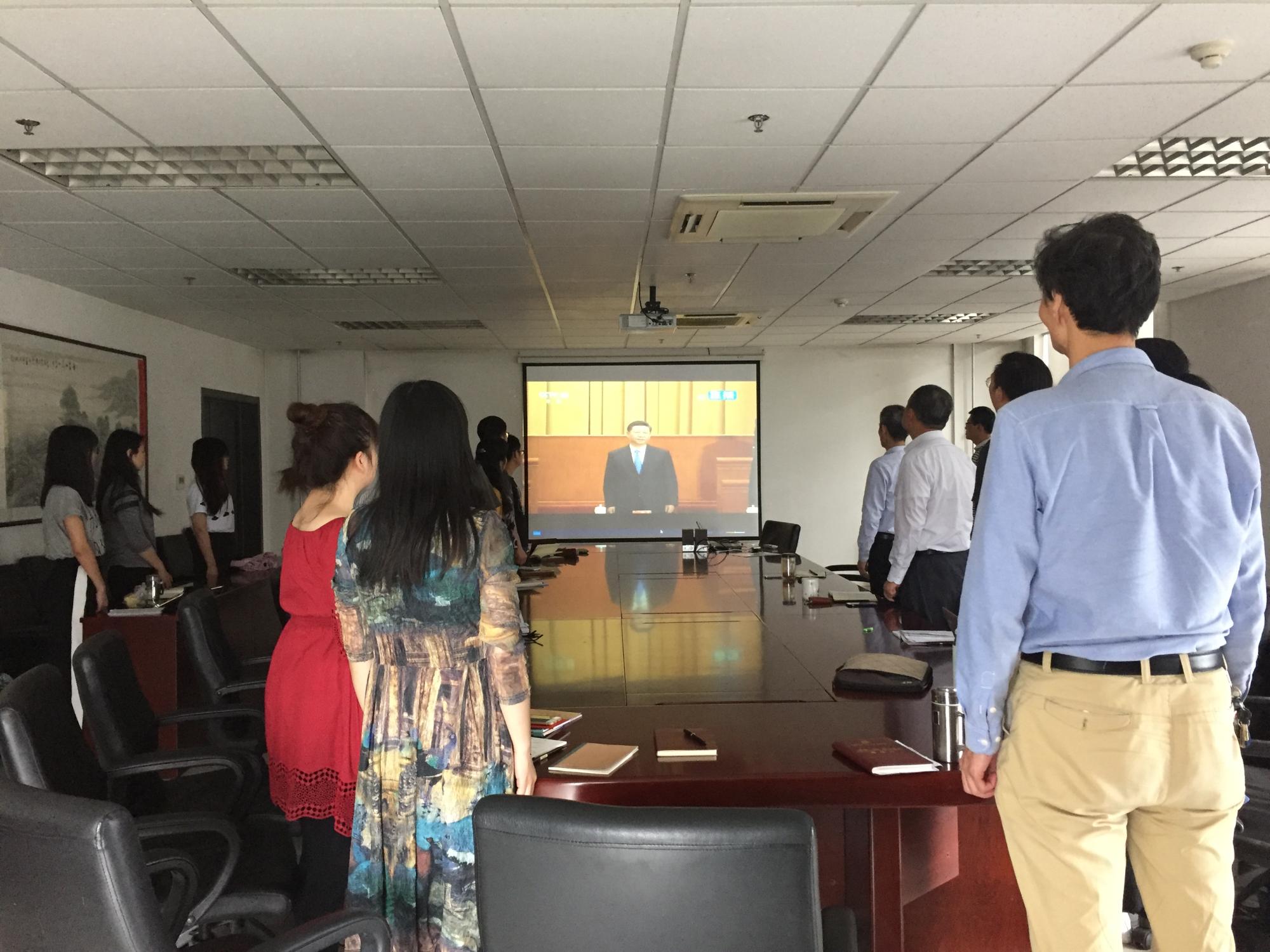 师生代表在外文楼B912会议室集体观看纪念马克思诞辰200周年大会直播,学习习总书记重要讲话。