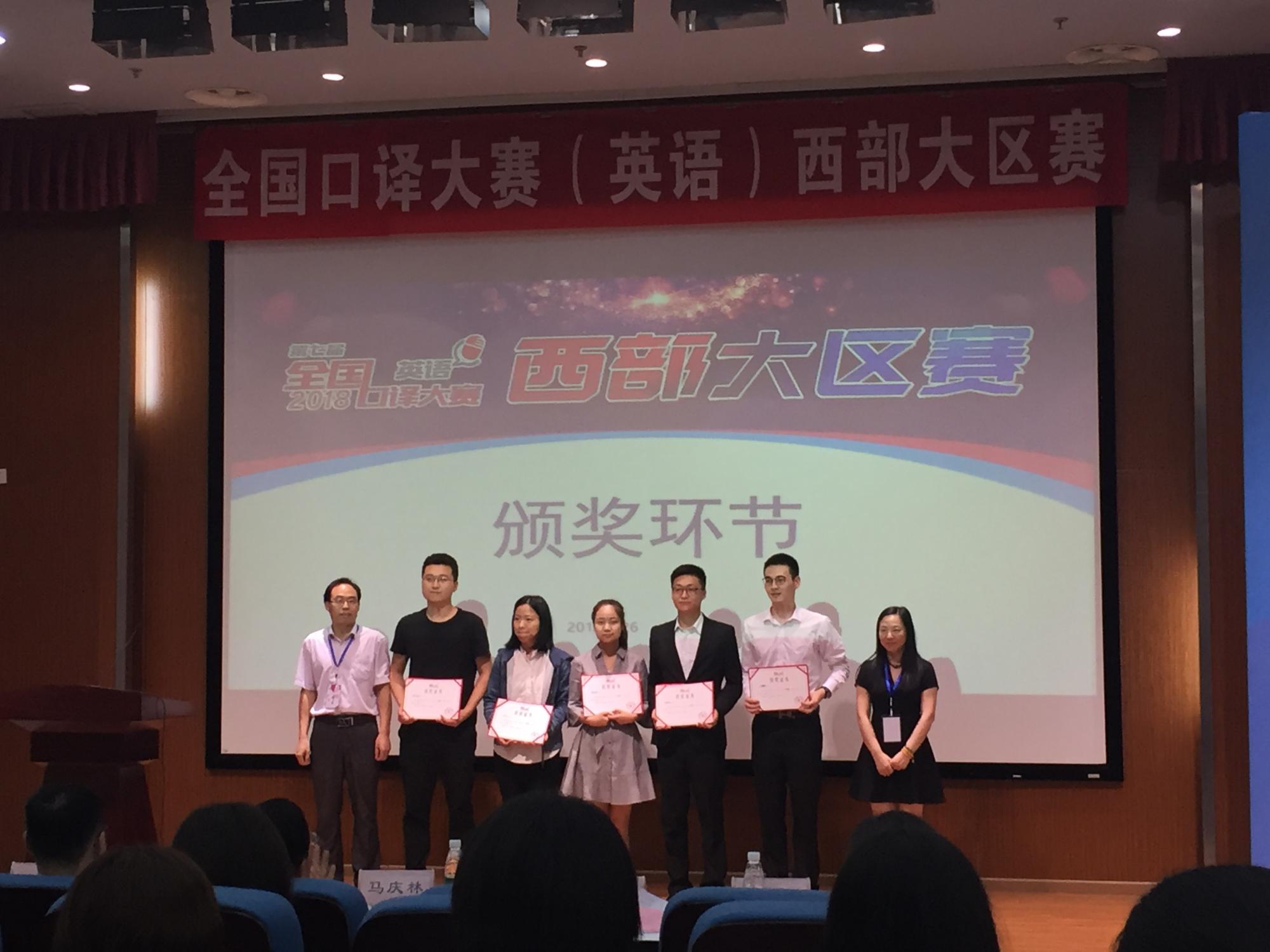 从陕西赛区脱颖而出的8名学生参加了比赛,其中2017级MTI翻译硕士研究生徐亮荣获西部赛区一等奖,刘雅恬获二等奖,任潇潇及2015级本科生陈雅莉获三等奖。徐亮将代表西部赛区参加2018年6月份在北京举行的第七届全国口译大赛总决赛。