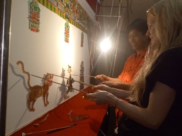 皮影戏表演者侯师傅为大家表演了经典剧目——《武松打虎》与《猪八戒背媳妇》,通俗易懂的故事情节以及侯师傅的完美演绎使得大家即使在语言不通的情况下,也都能饶有兴致地观赏。而栩栩如生的十二生肖布偶与各色的香囊则受到了许多女嘉宾的青睐,不少嘉宾更是自己动手体验了一把香囊制作的过程,并在香囊老奶奶的帮助下完成了自己的作品。在茶道方面,几位技艺熟练的茶艺师通过讲解示范煮茶过程和让大家品尝不同种类茶汤的方法,让大家感受到了中国茶文化的博大精深。在大家欣赏了不同的文化之后,包饺子、做面条活动成了嘉宾们共同的选择,因为学习完做面食之后,还能品尝亲手做的食物。