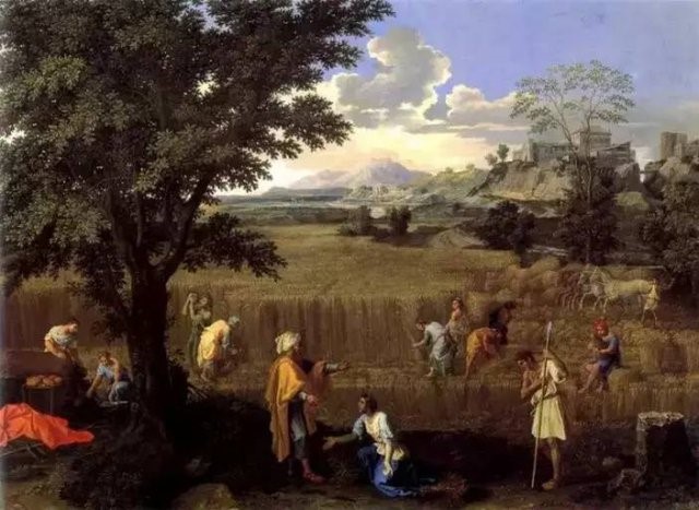作于1660至1664年间的《四季》(Les Saisons)是普桑生命末期的主要作品,是其致力于提升风景画与历史画的成果。这件作品是为红衣主教黎世留侄子所作,以旧约《圣经》为选材对象。在《圣经》故事背后,我们总能感受到古代传说中的神祇:阿波罗、谷物女神刻瑞斯、酒神与冥王普路托。在作品中,普桑再次探讨了富饶与贫瘠、生命与死亡的概念,将焦点放在阳光、水与大地上,表达对大自然的赞美之情。