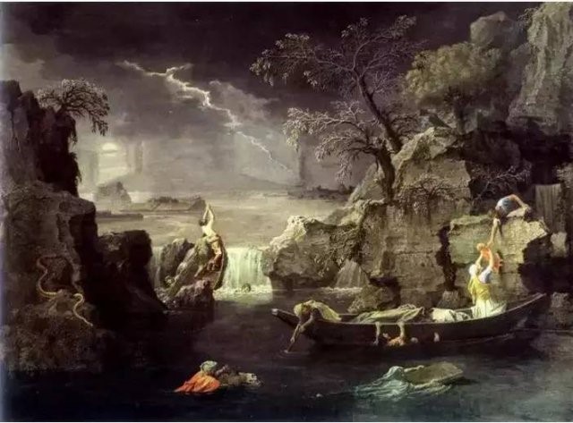 普桑挚爱绘画,一生勤奋,其油画作品达220-260幅、素描接近400幅。代表作有《所罗门的审判》、《台阶上的圣家族》、《花神的凯旋》,以及这幅大家比较熟悉的、颇具哲理的重要作品《阿卡迪亚的牧人》(Les Bergers d’Arcadie阿卡迪亚是希腊神话中的世外桃源。)