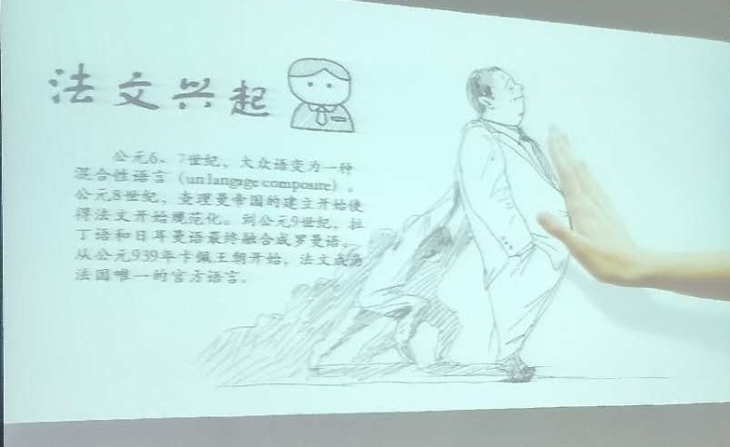 为了让一年级同学了解法语语言的历史,激发学生的好奇心、培养学生的研究能力,促进学生对法语语言和法语文化的学习,孟丽娜老师在第二学期给同学们布置了探究“法语的历史”这一任务,同学们自愿分组完成。经过两个多月的资料收集、整理,同学们在小学期展示了各小组的研究成果。