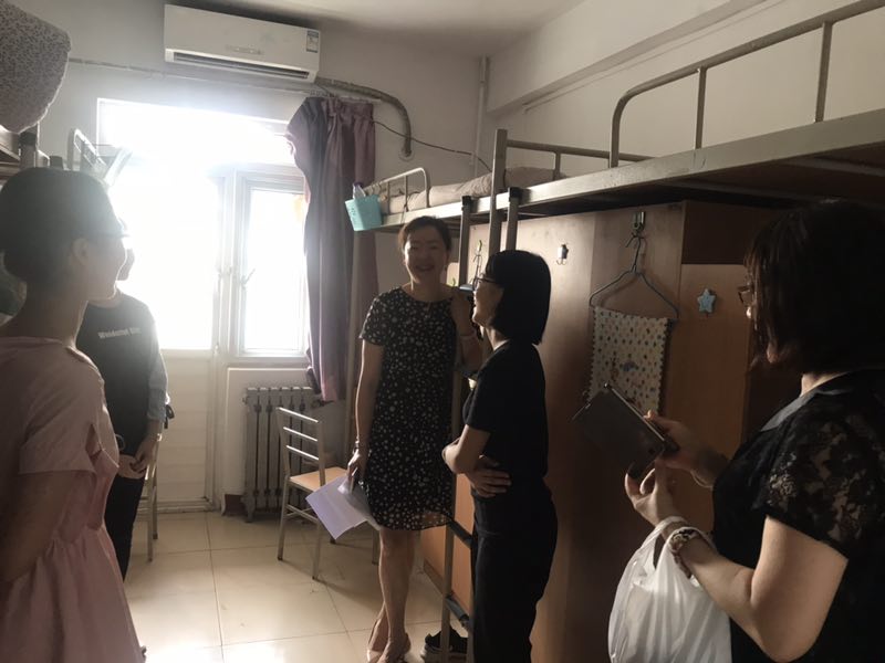 学院党委书记杨小渭、副书记许明、副院长程冰,英语系主任杜丽霞、日语系主任张文丽、法语系主任王奕、院办副主任马薇,班主任刘丹翎、张蕾、沈丽芳、王晶、孟丽娜在彭康书院院务主任叶明、院务副主任王琦、辅导员李楠的陪同下来到学生居住的东17、东20宿舍楼,与学生及家长亲切交谈。学院领导老师详细询问学生基本情况,是否适应新的学习生活环境,专业选择意向等并对学生及家长的提问给予耐心的解答。他们还叮嘱同学们遇到困难要及时和辅导员、班主任沟通交流。热情的话语、亲切的问候,是学院对新生们的关怀,使他们来到学校仍有家的感觉。