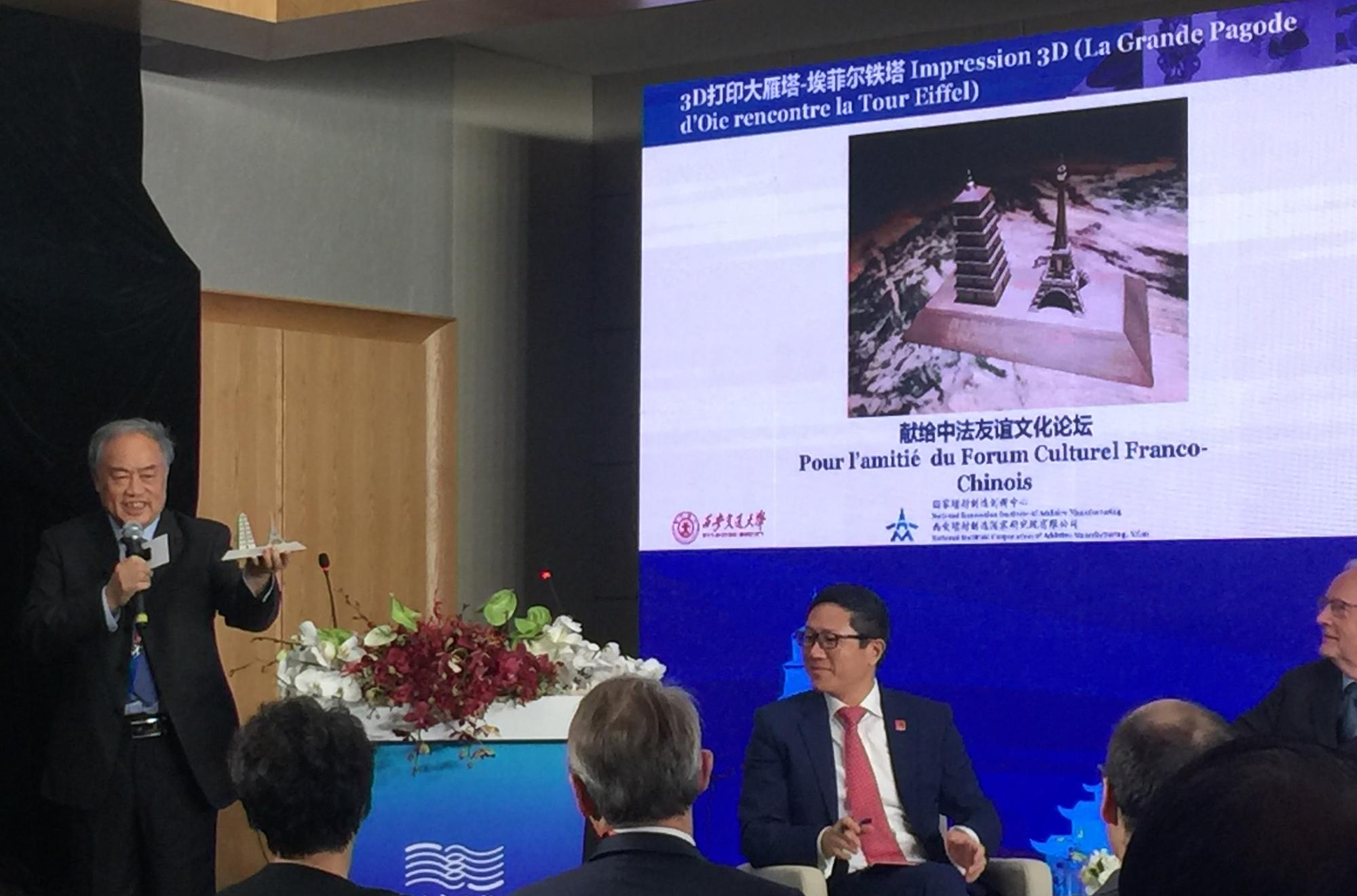卢秉恒教授带来的不锈钢3D打印的大雁塔和埃菲尔铁塔引得在座的人惊叹不已,纷纷拍照。