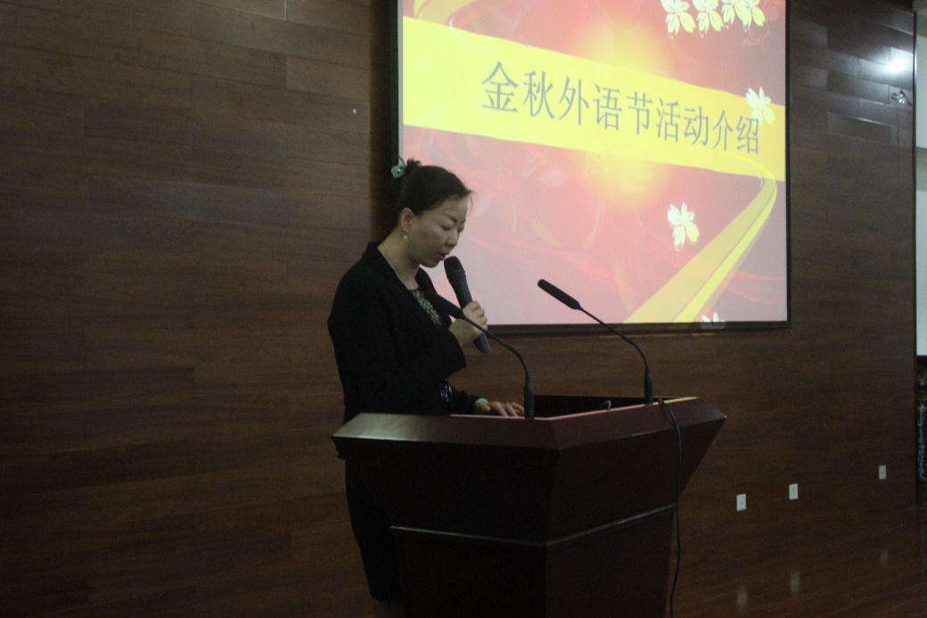 精心筹备的金秋外语节独树一帜,华彩卓然,受到校领导及各部门的高度重视,预祝此次外语节圆满成功!”