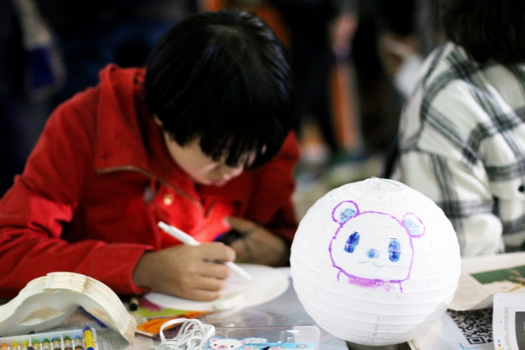 绘画区提供绘扇、绘面具、绘灯笼的指导和讲解,工作人员一边示范一边与参会者进行交流,将绘画装饰这一传统的文化形式传递给游客。
